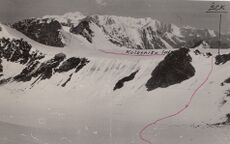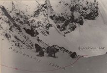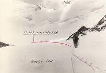 Файл:Djungaria2009 lednik Berga 1.jpg|''Снимок перевала Белакоринский с запада с ледника Берга [[Горная 3ка Борисова на Джунгарский Алатау 2009 1|'''2009''']] год'' | |||