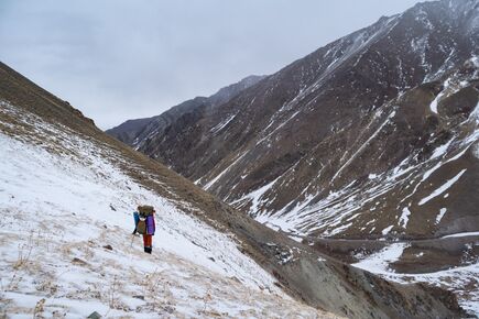 Доходим до серпантина, и дальше идти около 3 километров по дороге, а где-то около нее Антон и встречающие его парни уже должны были ставить лагерь. Как потом выяснится, Антон по пути потерял рацию, и они возвращались, чтобы ее найти. Вскоре нас нагнал Сева, и по серпантину до лагеря шли вшестером. Пока идем, я спрашиваю у Севы, что он думает о том, как пока что всё проходит – до этого в группе проскальзывает мнение, что не всё идет, как надо. Сева спокоен и говорит, что даже если мы не будем успевать, один перевал мы легко сможем срезать без больших потерь, а еще он рад, что на акклиматизации никому не стало плохо. «Немного косяков и немного горняжки, а в остальном всё норм», – резюмирует руковод наш акклём. | Доходим до серпантина, и дальше идти около 3 километров по дороге, а где-то около нее Антон и встречающие его парни уже должны были ставить лагерь. Как потом выяснится, Антон по пути потерял рацию, и они возвращались, чтобы ее найти. Вскоре нас нагнал Сева, и по серпантину до лагеря шли вшестером. Пока идем, я спрашиваю у Севы, что он думает о том, как пока что всё проходит – до этого в группе проскальзывает мнение, что не всё идет, как надо. Сева спокоен и говорит, что даже если мы не будем успевать, один перевал мы легко сможем срезать без больших потерь, а еще он рад, что на акклиматизации никому не стало плохо. «Немного косяков и немного горняжки, а в остальном всё норм», – резюмирует руковод наш акклём. | ||