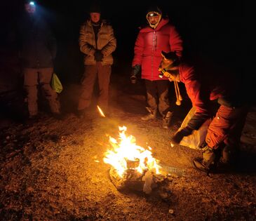 В дело идет оставшееся виски Антона. И ночью, под чистым невероятно звездным небом, под тост «За прекрасный перевал 1Б!» звякают металлические кружки.