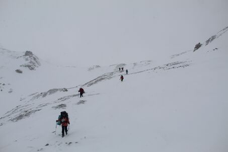 Участники группы, уже ходившие в киргизские горы раньше, рассказывали: погода в этом году действительно не совсем типична для этого региона. Сейчас здесь аномально много снега. Кроме того, ветер. «Из года в год зимы здесь становятся все более ветреными…» – замечает Александр Петрович.