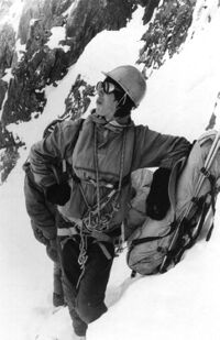 Это со стороны Онтора. Первая веревка. Косой подъем по заснеженным скалам. | |||
