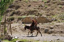 Первый день шли медленно. Потому что первый день и потому что сразу резкий набор высоты. Когда вскарабкались на плато, на котором расположены Куликалонские озёра, вслед за нами появились французы с фотоаппаратами и без рюкзаков. Они будут идти параллельно с нами до самых Мутных озёр. Вслед за французами показался караван осликов с их вещами - палатками, стульями, столами, шатрами и прочей всячиной. Навстречу движутся караваны местных жителей на осликах - заготавливают дрова (арчу). Возможно, они идут на Куликалоны с грузом для "клиентов", а обратно везут дрова уже просто попутно, чтобы не ехать порожняком. Как нам сказали: "Ослик - не лошадь, может нести сто килограмм". И даже демонстрировали, один погонщик взгромоздился на уже нагруженного до предела ишачка, и ехал, напевая какую-то песенку. На ломанном русском языке спрашивают - откуда мы? Услышав, что мы из Новосибирска, непременно отвечают: "Самый кароший место!". Погоняют осликов забавным криком "Кхх!, Кхх!", а чтобы остановить ослика нужно крикнуть "Ущщь!".
