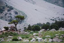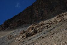 В этот день мы дошли до слияния рек Амшут и Арчамайдон. Путь от озера лежит через завал (в результате которого, собственно, озеро и образовалось). Завал этот представляет собой высокую насыпь, метров 800 по высоте, довольно круто спадающую к реке, где вода появляется только некоторое расстояние. По ходу спуска попадаются рощицы и заросли, расположенные в подобии моренных карманов или нависающих террас. Везде обилие сухой древесины. Фактически, начиная с того места, где из озера Алло вытекает вода, дрова есть в изобилии. Также мы часто попадаются стайки каменных куропаток кекликов, птица семейства фазановых. Они завидев людей начинают смешно удирать по камням. В зарослях, местами почти настоящий лес, ощущалось присутствие какой-то живности. Кто-то там сновал, удирал и трещал ветками. Нужно отметить, что долина реки Зиндон и Амшут на генштабовских картах (и 500-метровках, и километровках, и двушках) отражает реальность весьма приблизительно. Ни на одной из этих карт не отмечено красивейшее озеро Малое Алло, не отмечены группы деревьев, рощицы, "зелёнки" и т.п.