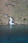 С седловины можно спускаться по руслу, тогда минут через 15-20 появляется вода. Мы хотели посмотреть верхнее озеро Азорчашма, поэтому пошли траверсируя склон налево в сторону вершин 3152, и 3008,2. К удивлению через пару ходок показался ручей, на генштабовских картах в этом месте вода не обозначена. Родник с чистой прозрачной водой. Остановились на обед.