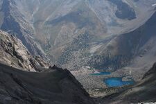 Вершина Замок 5070 и долина вниз, к Алаудинским озёрам