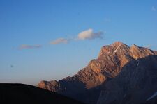 Возможны также восхождения на вершину Замок 5070 (сложность 1Б-2А, скорее, ближе к 2А, так как ледник с трещинами на подъём крутизной до 45 градусов и на гребне обход жандарма с провешиванием горизонтальных перил) или восхождение на седловину перевала Мирали (5060 м, сложность 1Б-2А, ночёвка на седловине перевала будет хорошей высотной подготовкой). Множество красивых озёр - Маргузорские озёра - то, что назывют MUST SEE, высокогорное озеро Алло (что переводится как "Уединённое" или "Эхо"). Район Фанских гор был очень популярен до 1991 года ("Я сердце оставил в Фанских горах..." Юрий Визбор), до начала гражданской войны. Тогда на окраинах большинства приграничных городов Алтайского Края и Западной Сибири в 93-94 годах появились таборы таджикских беженцев, собирали подаяние по улицам и общежитиям (даже на у нас на Пирогова). Потом был долгий период, когда в Фанские горы никто не ходил; несколько лет назад в Фанах была группа из нашего клуба, но никакой информации, отчёта, фотографий после этого не осталось.