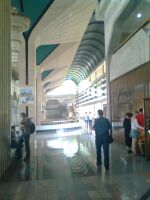 Пока ехали, путём каких то махинаций с курсами валют и других оккультных заклинаний, "фифтин доларс" превратились в восемнадцать. Зато водила нашёл нам клёвые арбузы, дыню и лепёшки, торговался на местном (или делал вид, что торгуется). На вокзале шлялись местные менты, к нам никакого интереса не проявляли. В здании работает кондиционер, обстановка и антураж очень приличные.