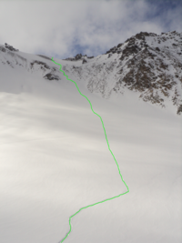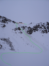 На обратном пути, решив срезать дорогу, Саша вышел на опасный участок склона и срезал «доску». Прокатившись в образовавшейся лавине около 100 метров, он отделался лёгким испугом: пара ушибов, ничего из снаряги не потерял, даже очки так и остались сдвинуты на лоб.