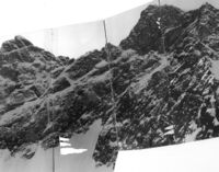 В двух словах: у нас там было 9 веревок в среднем по 50 м по скалам на подъем и 11 веревок по скалам на спуск. Ночевали на подъеме на микроскопическом плечике. Палатка там поместилась, но по нужде приходилось уходить на 40 м по веревке вниз на предыдущую полочку; кухня тоже не помещалась - готовили в палатке. Последние 60 м перед седловиной проходили 2 часа: очень прилично крутая скала была вся залеплена твердыми снежными шапками: все зацепы-ступеньки-трещины для крючьев под ними, и все руки отмашешь, пока собъешь. Мы брали с собой 35 скальных крючьев и 3 длинных веревки, на этом участке использовали все крючья до единого, редкий прецедент. На седловине было не остановиться, даже не отстегнуться - гребень-нож, пришлось спускаться, хотя было очевидно, что засветло не успеем (зимой короткий день, но и холодно: уж лучше ночью спускаться, чем сидячая ночевка). Спускались 5 часов в полной темноте, под конец во всех фонариках сдохли батарейки. В конце спуска попался отвес 60 м, хорошо, что была одна веревка шестидесятка, и повесили мы как раз именно ее. Похоже, что западная сторона все-таки самую малость попроще (кроме сброса, средняя крутизна чуточку меньше, чем с востока).