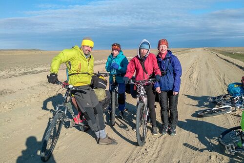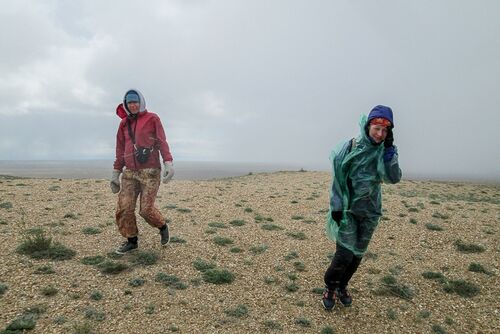 В первые три дня движение осложнялось погодным условиями. Обычный для Зайсана сильный ветер превратился в штормовой, против которого ехать было почти нереально (мы делали ~ 30 км в день), температура было около нуля, локальные снежно-дождевые фронты только успевали за горизонт убегать, иногда зацепляя и нас. Мы надели всю одежду, которая была в запасе (а было ее не сильно много, т.к расчитывали на теплый казахский май).