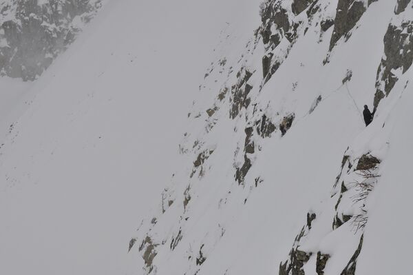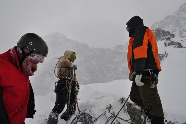 Нашу попытку провесить верёвки на спуск - траверс пресёк буран