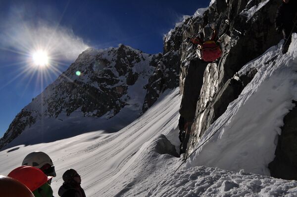 8.00 - 11.00 - спуск с перевала. Одна верёвка 50 м. + отводные перила метров на 10.
