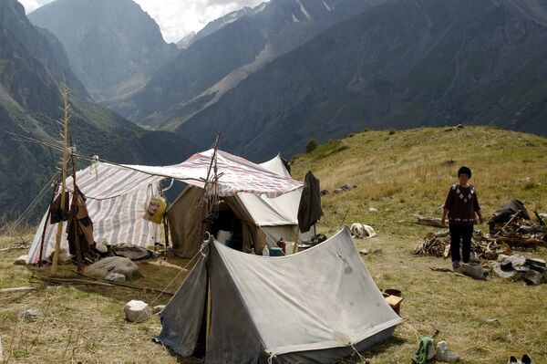 В Алмату мы прибыли в 6 утра (по Астане). На площадке перед вокзалом нас встретила толпа таксистов, готовых отвезти на всевозможные направления. Но мы решили не горячиться и спросили у местных, на каком транспорте можно добраться до Автовокзала (они называют его Сайраном), упали в автобус и доехали минут за 20-25 до места. С автовокзала довольно часто ходят рейсовые автобусы в Бишкек (стоимость билета около 200 рублей). Но поскольку нас было много и рюкзаков с нами - тоже, то мы договорились с водителем маршрутного "бусика" и двинулись в путь на нем (???-стоимость). Ехать не очень долго (238 км) по хорошей дороге, по пути мы остановились перекусить в кафе Авразия, где нас сразу поразили довольно низкая стоимость и несомненно большой обьем порций заказанных блюд. Водитель нам попался хороший, сразу просветил нас, что деньги лучше менять в Бишкеке, а не на Иссык-Куле (поскольку все мы после похода собирались на денек-другой туда заехать) и также довез до ЦУМа, где мы отоварились местными сим-картами, а уже затем привез нас к офису турфирмы, где мы заказывали дальнейший транспорт. В турфирме нас встретили довольно приветливо, разрешили оставить рюкзаки на их складе и поскольку наш транспорт ожидался только часа через 3, предложили прогуляться по городу. Мы конечно же посетили памятники, монументы и др. встретившиеся нам достопримечательности в центре города, ну и зашли в Рамстор, где опять же были удивлены стоимостью пищи в местных кафе. Водитель был местный и часа за полтора довез нас до нашей долины, где мы проехали пару деревень остановились у моста, за которым якобы дорога заканчивалась. Здесь он нас и оставил, у двух одиноких юрт. Местные из деревень часто на лето уезжают выше в долину, где пасут скот до первого снега. Был довольно ранний вечер, и мы решили, не тратя времени зря, пройти несколько ходок. Когда стало смеркаться, встали на ночлег недалеко от дороги.