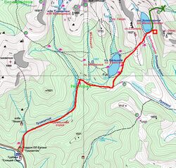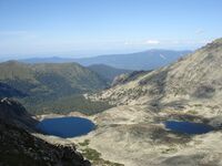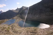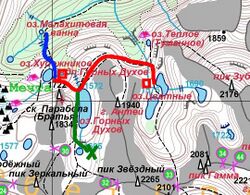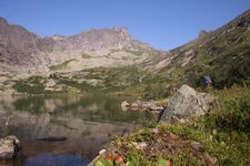 оз. Малахитовое — пер. Пикантный №33 (1Б) — озёра Цветные (Девичьи глаза) — восх. на пик "Зуб Дракона" (2А альп.) радиально. Ночевка на Цветных озерах.