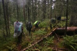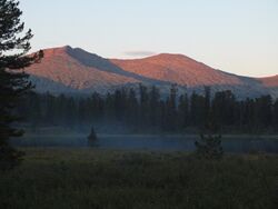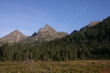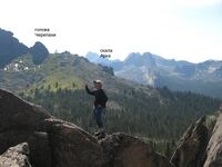 - По снаряжению главное отличие от других горных районов состоит в том, что здесь нужны сапоги. Я уже четыре раза побывал в Ергаках. Первый раз у меня были треккинговые ботинки scarpa manta – очень скользкие, я повредил палец на руке в результате того, что подскользнулся на сыром камне. Два следующих раза – резиновые сапоги. В этот раз я взял полеуретановые сапоги. Я считаю, они лучше всех держат на мокрых скользких камнях, при этом очень легкие, так что с ними, в принципе, можно брать не тяжелые трекки. То, что они порвались – просто не повезло; у Юры, к примеру, в походе порвались резиновые сапоги. Кроме того, здесь нужны средства отпугивания от медведей, и надо чтобы участники были хорошо проинструктированы насчет правил поведения в районах, где есть медведи. За четыре похода, я встречал медведей два раза. Поменял свое мнение о том, что в Ергаках ледоруб не нужен. У трети участников нашей группы ледорубы были, и они очень пригодились при рубке ступеней в скользких травянисто-земляных склонах.