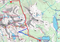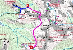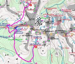 - Если невозможно пройти перевал Верхняя Парабола н/к (No30) (например, присутствие медведя, он как раз в этом районе ожидается), то обход по тропе