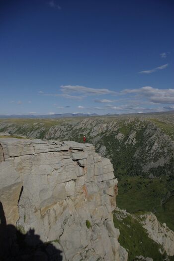 на вершине Сайнак 4107,2. Вид в долину р. Боро-Тала.