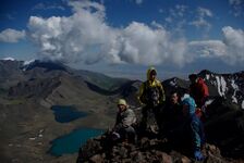 Перевалы: Ходили на них радиально от базового лагеря на Бирюзовом озере. Хребет широкий можно передвигаться без организации групповой страховки. Перевал Сталкер находится в хребте Кандарак восточнее перевала Светоч. На юг с этого перевала мы не спускались, по-видимому проще по хребту пройти на седловину перевала Светоч и там уже спускаться к Бирюзовому озеру.