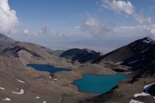 Мутные и Прозрачное озёра к западу от пика Сайнак, вид с пика Сайнак на запад, в сторону пика Шренка и перевала Солярис.