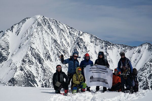 Группа на перевале Атбажи, на фоне пика Металлург