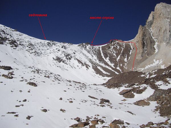 Спуск с перевала Москальцова в западный цирк
