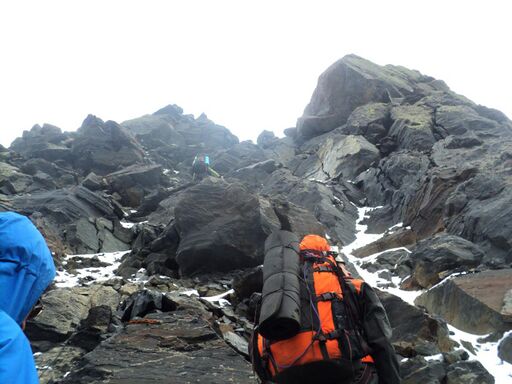 Подъем на перевал Блока и траверс до спусковой седловины