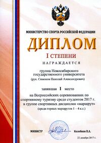 Первое место на чемпионате Российского студенческого спортивного союза 2017