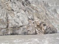 Спуск с перевала в сторону ледника Грум-Гржимайло проходит под скалами, с которых нами были замечены падения мелких камней. Технически спуск соответствует категории 3А: было повешено 6 веревок (рис. 6.7).