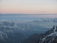 2. Неустойчивая погода. За весь поход мы считанные разы видели вершину пика. Облачность постоянно висела выше 5500 м. Велика была вероятность, что мы сможем подняться на плато Революции до высоты 6200 м, проведем на нем пару ночей и будем вынуждены спуститься обратно.