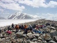 Рис. 6.1. Стоянка под перевалом Паустовского со стороны ледника Федченко.