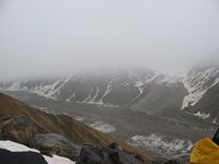 Рис. 4.82. Перевал Кашал-Аяк, стоянки Некрасова. Фото в сторону ледника РГО.