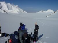 Погода неустойчивая – около полудня солнце спряталось в облаках, позднее они развеялись и стало жарко. Трещин практически нет. Встали на обед около 13-00, после обеда сняли кошки. Снег начал проваливаться. К сожалению, хоть какой-нибудь информации о прохождении ледника Витковского у нас не было. Это, конечно, заметное упущение, т.к. годом раньше здесь побывала группа А. Лебедева, и детали маршрута по леднику при желании легко было узнать.