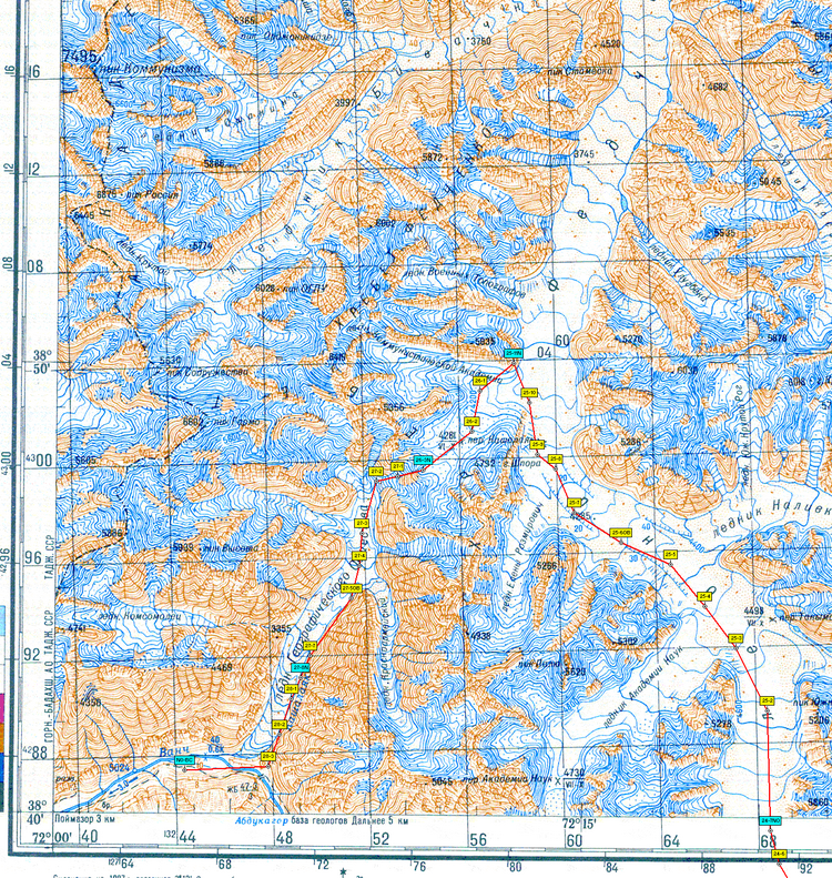 Рис. 7.1. Маршрут заброски на ледник Абдукагор .