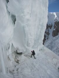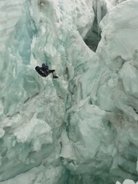 Рис. 4.74. Спуск в трещину в ледопаде ледника Витковского.