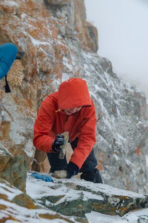 Раз перевалы мы больше никакие не идем, торопиться уже особо некуда. На одном из привалов наши геологи (Юля и Соня) находят какую-то заинтересовавшую их скалу и начинают долбить ее ледорубами. «Подпиши потом фото – геологи разбирают скалу, потому что она стояла на их пути», – просят они меня.
