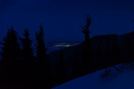 Погода к этому моменту оставляет желать лучшего. Заметно холоднее, чем вчера, сыпет мелкий назойливый снег, дует ветер. Пока ужинаем, туман рассеивается и открывается вид на огни Бишкека, горящие посреди темноты вдали где-то внизу.