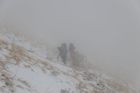 Пока ждем его возвращения, поем песни про туман, снег и вьюгу. В начале похода мы еще соблюдаем суеверия и пропускаем строки песен, где поется про погодные условия, к этому моменту уже поем обо всем подряд, что видим вокруг и что приходит в голову.
