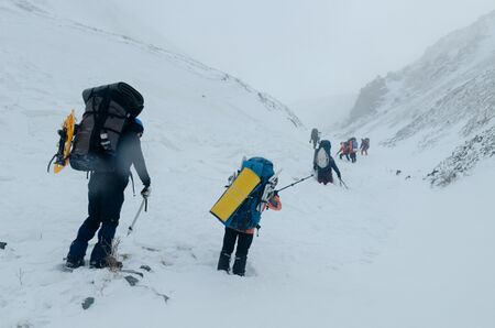 Первые ходки погода невероятно спокойная. Тепло, мягко падает снег. Затем запредон нас все-таки нагоняет. Всё вокруг растворяется в тумане, который поглощает впереди идущих, если они отошли достаточно далеко.