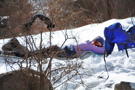 Как планировалось заранее, встали в 7, к 8 уже загрузили все вещи в машину и едем. Снега в этом году в Бишкеке действительно много, заметно больше, чем было в это же самое время год назад. Раз здесь столько, то в горах должно быть еще больше. Надежд на полянки с травой остается всё меньше. Выходим из машины, как потом окажется, не доезжая до планируемого места старта пару километров.