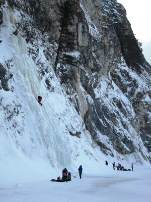 Удобное место для тренировок выходного дня на льду, начиная с середины декабря. Есть основания полагать, что предпочтительно ехать, когда световой день становится относительно длинным, а водопады сухими.