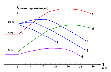 Рис. 1. Типичная кривая спортивной формы в горно-спортивном мероприятии.