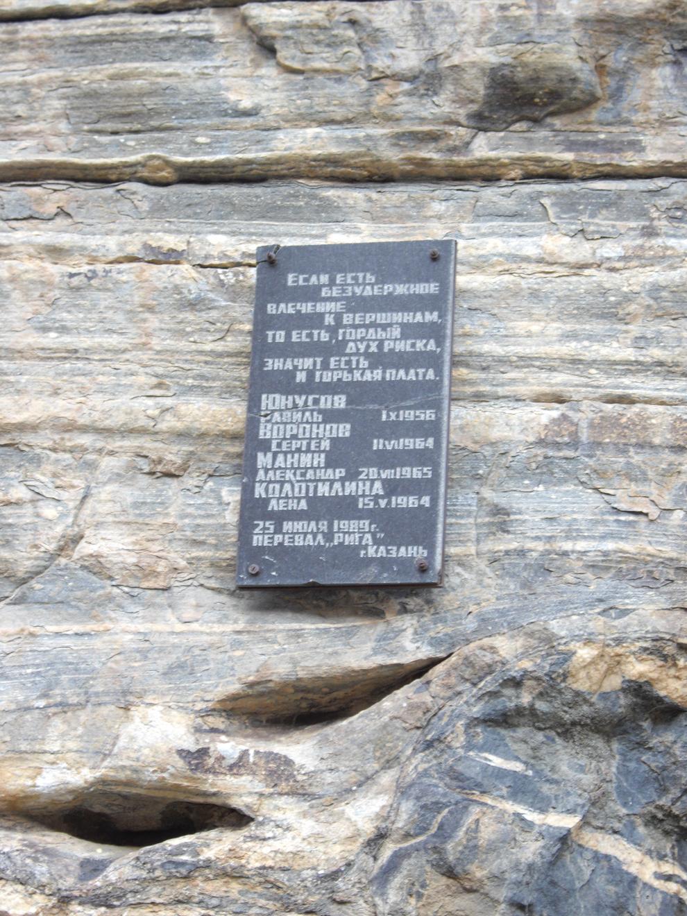 Памятная табличка про перевал Рига