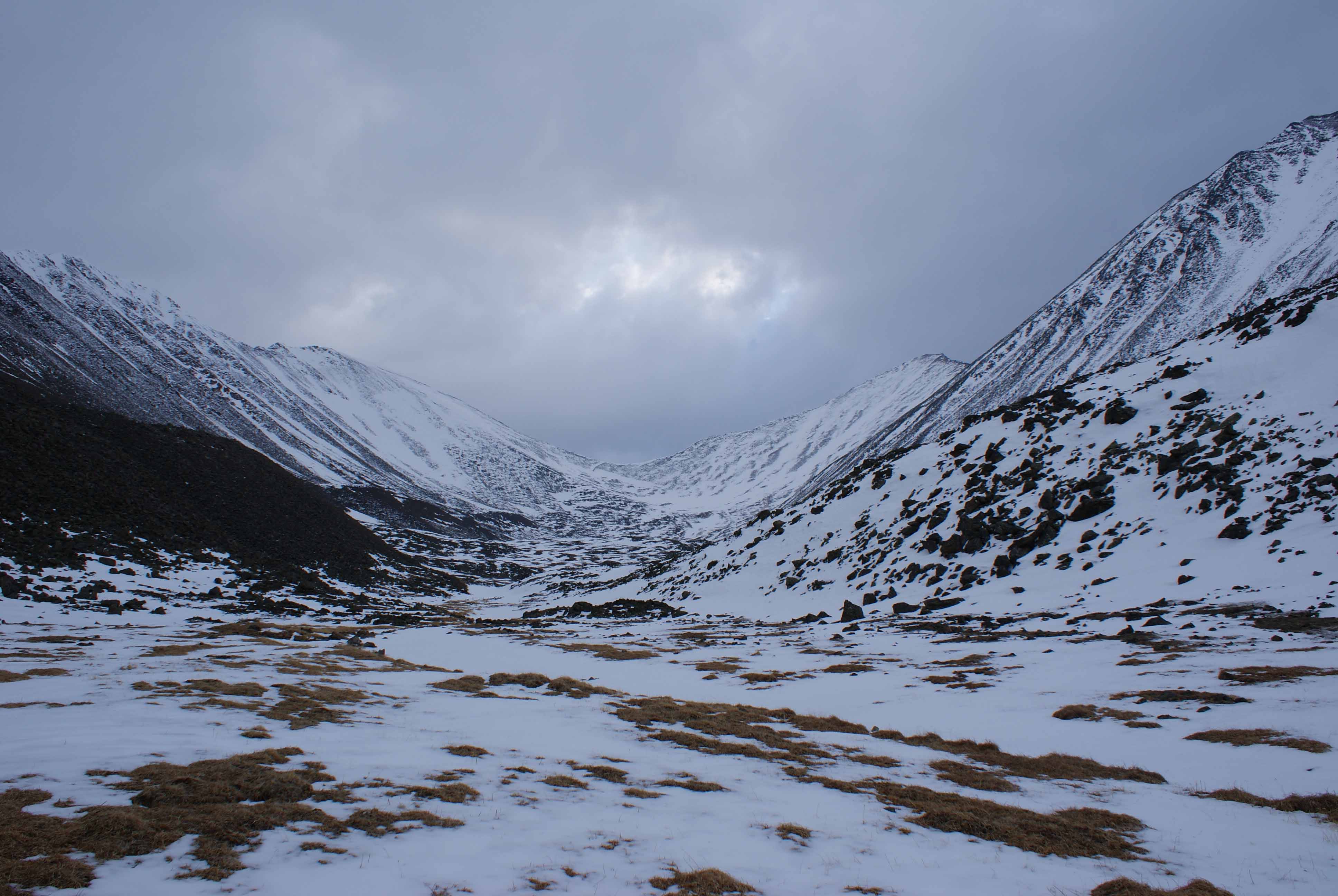 Горная 1ка Жимулева на Восточный Саян весна 2009. Шумакский перевал (впереди). Вид со стороны Эхе-Гера.