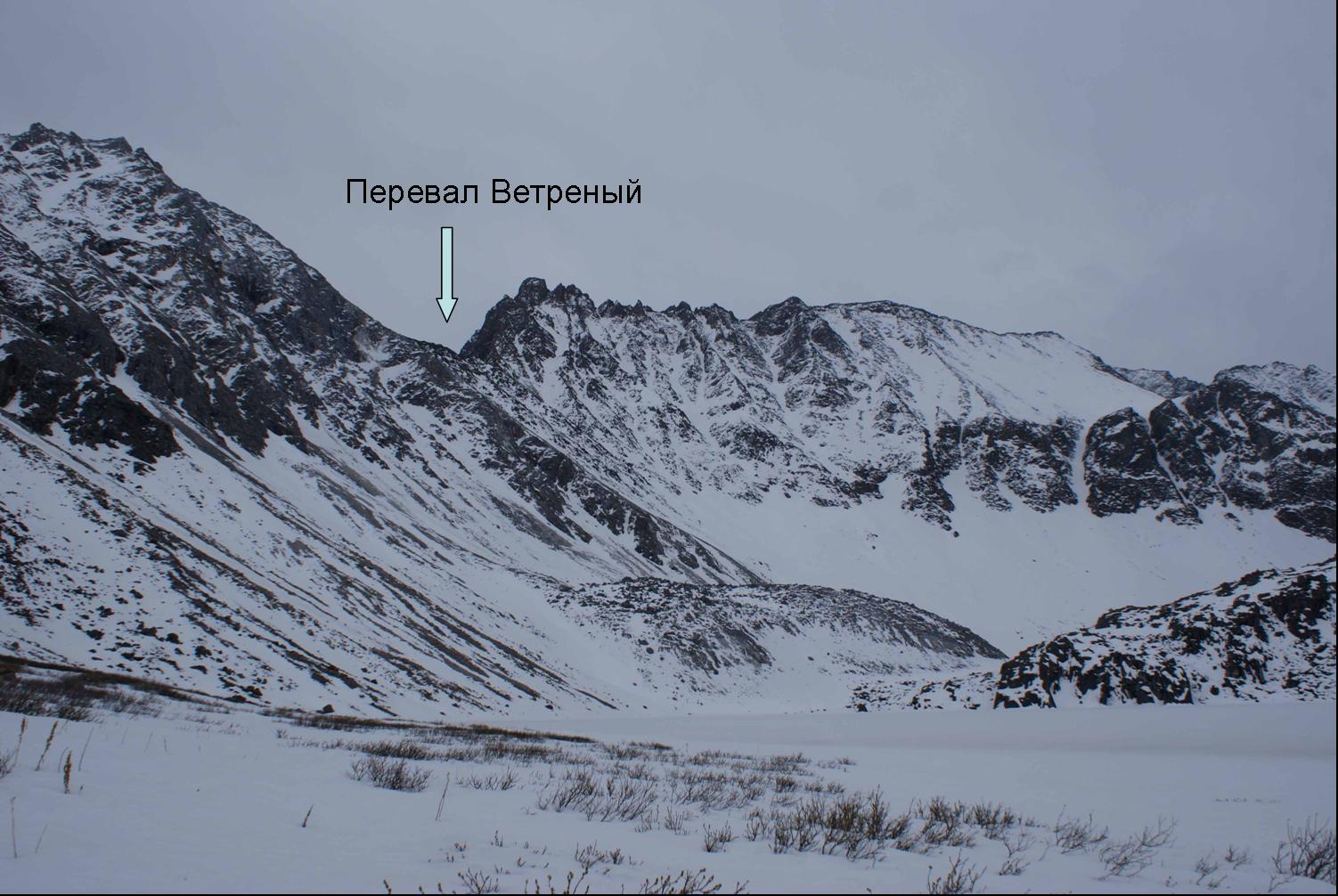 Горная 1ка Жимулева на Восточный Саян весна 2009. Вид на перевал Ветреный с северного берега нижнего озера на р. Перевальной.