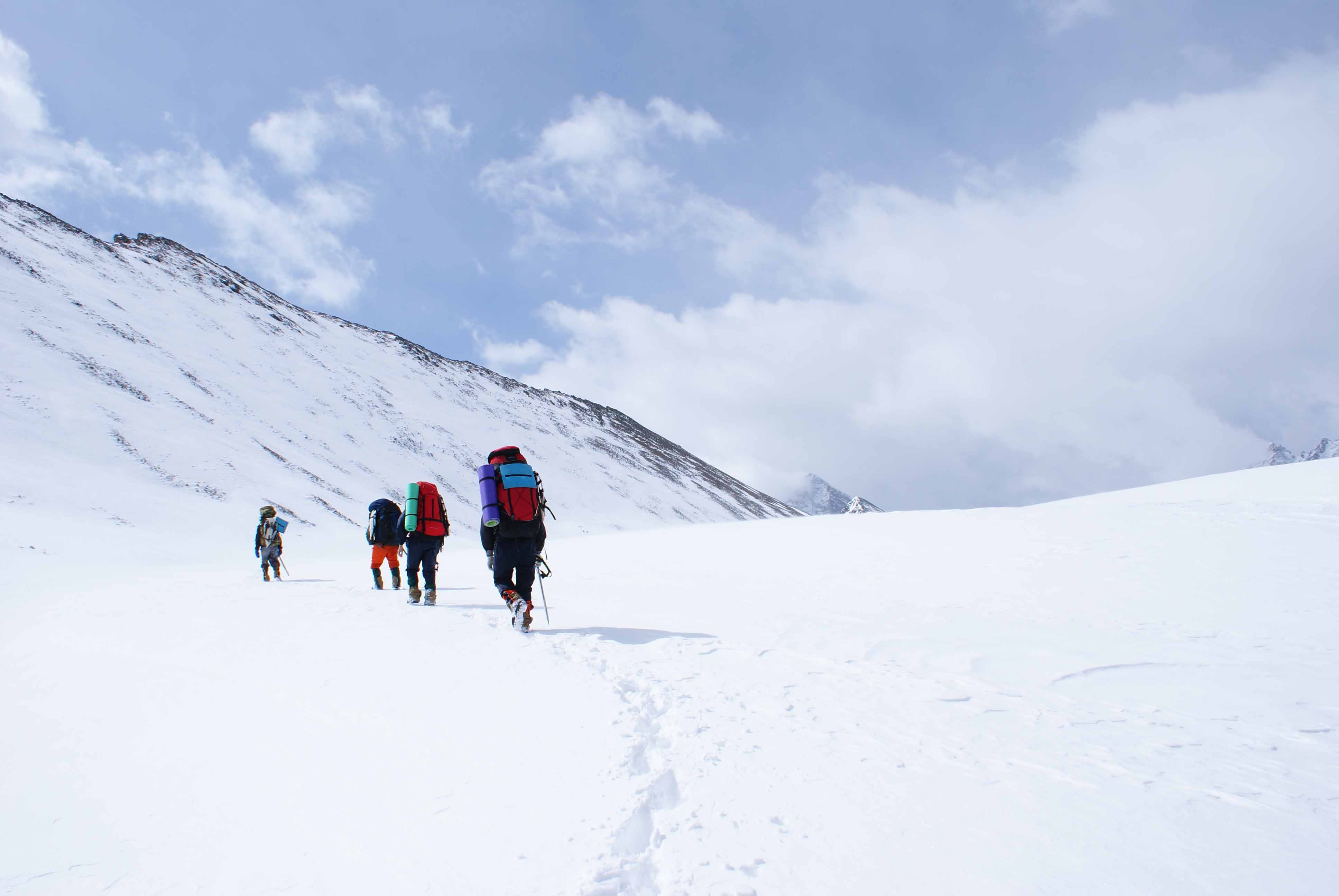 Горная 1ка Жимулева на Восточный Саян весна 2009. Начало спуска с перевала Байконур в направлении р. Правой Билюты.